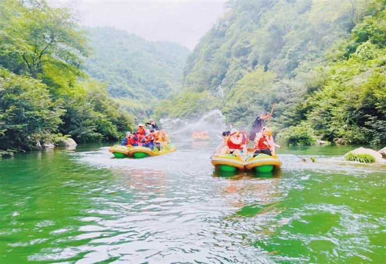 近日,游客在永順縣猛洞河景區(qū)漂流、打水仗,盡情享受清涼。連日來(lái),湘西州持續(xù)高溫天氣,猛洞河景區(qū)漂流迎來(lái)客流高峰,不少游客來(lái)此激情沖浪、愜意泛舟,戲水消暑。 團(tuán)結(jié)報(bào)全媒體記者 李再興 通訊員 王璇 攝