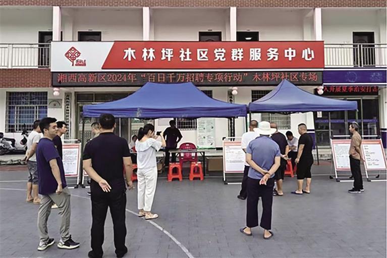 7月30日,湘西高新區(qū)2024年“百日千萬招聘專項行動”走進木林坪社區(qū)。 田丹 攝