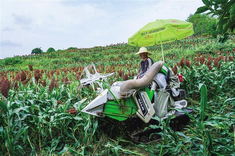 8月17日,村民在吉首市馬頸坳鎮(zhèn)著落村檀木大坡上收割高粱。湘西云霧糯高粱品種優(yōu)良,種植周期短,收益理想。合作社與中糧集團酒鬼酒股份有限公司達成合作,村民負責種植高粱,公司負責收購,合作社流轉土地超過3000畝,畝產(chǎn)500公斤左右。據(jù)了解,目前該公司在花垣、保靖、瀘溪、吉首建立了多個高粱基地,推動構建產(chǎn)業(yè)鏈助力鄉(xiāng)村振興。 團結報全媒體記者 張謹 攝