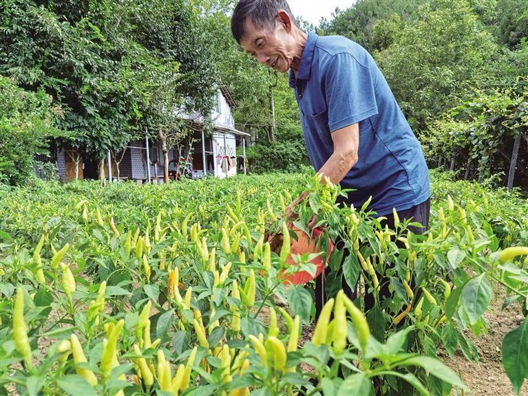 連日來,永順縣松柏鎮龍橋社區辣椒種植戶忙著采摘朝天椒,以及時供應市場。時下,當地朝天椒進入豐收期,村民搶時采摘以收購價每公斤8元售出,同時,朝天椒還可以加工成泡椒等,發揮更大附加效益。 羅遠程 雷夏銘 攝