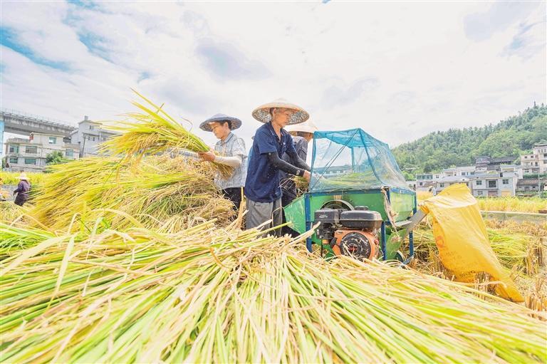 8月29日,吉首市矮寨鎮幸福村,村民搶晴好天氣收割水稻,一派豐收景象。 梁永鴻 攝