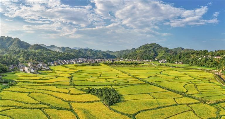 9月10日,保靖縣復(fù)興鎮(zhèn)甘溪村的村集體經(jīng)濟(jì)水稻產(chǎn)業(yè)進(jìn)入收獲期,金燦燦的稻田呈現(xiàn)出一派豐收的景象。甘溪村打造千畝稻油輪作基地,助推村集體經(jīng)濟(jì)發(fā)展,2023年,村集體經(jīng)濟(jì)收入160余萬(wàn)元。 團(tuán)結(jié)報(bào)全媒體記者 朱開(kāi)朗 攝