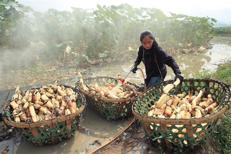 連日來,龍山縣召市鎮前衛村蓮藕進入成熟收獲期,藕農及時采挖供應市場。近年,該鎮依托當地自然資源和地理優勢,引導農戶因地制宜發展蓮藕種植產業,既美化了鄉村環境,又增加了村民收入。