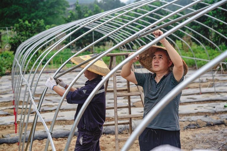日前,吉首市石家沖街道寨陽村,村民在忙著搭建蔬菜大棚,不誤農時抓緊進行秋冬種植各項工作,為豐收增產打牢基礎。 團結報全媒體記者 楊帆 余江明 攝