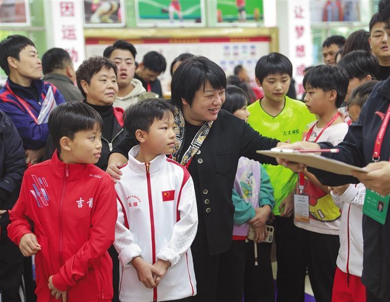 比賽首日,奧運冠軍楊霞來到湘西州體育中心舉重館為小選手們加油鼓勁。