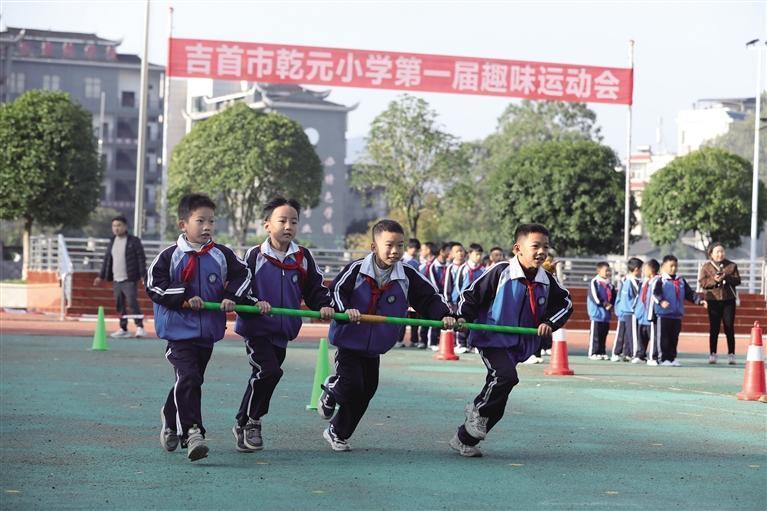 11月27日,吉首市乾元小學(xué)第一屆趣味運(yùn)動(dòng)會(huì)上,小選手們正在進(jìn)行“旋風(fēng)跑”。該校3400余名學(xué)生參與運(yùn)動(dòng)會(huì),在趣味運(yùn)動(dòng)中強(qiáng)健體魄。本次運(yùn)動(dòng)會(huì)以“趣味競技,快樂成長”為主題,設(shè)有“摸石過河”“車輪滾滾”“旋風(fēng)跑”“八字跳繩”“沙包投擲”等多項(xiàng)集體項(xiàng)目。 熊攀 劉玉芳 攝