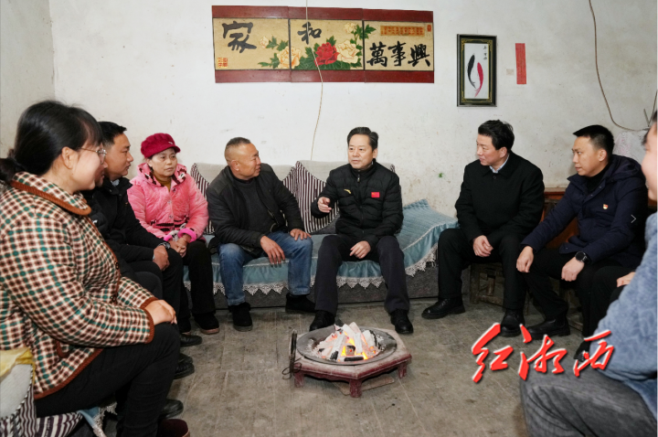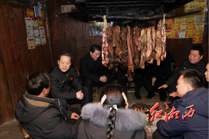 紅紅的火苗在火坑里歡快地跳動,炕上大塊臘肉和串串香腸在火苗的烘烤下散發著陣陣誘人香氣,展示著主人家一年的好收成,臘月二十的湘西農村,年味漸濃。“我們走親戚來了!”在石欄鎮朋巖村,虢正貴先后來到聯系戶龍明高、困難群眾龍樹文和困難黨員龍遠上家中,與他們圍坐一團拉家常、聊發展,到房前屋后、廚房菜園實地查看生活環境和生活起居情況。虢正貴詳細詢問他們過去一年經濟收入情況和當前生產生活情況、身體情況,聽取他們新一年的想法和打算,給他們送上新年的問候和祝福,鼓勵他們堅定發展信心,把日子過得更加紅火。要求鎮、村以及駐村工作隊多關心困難群眾和困難黨員的生產生活,充分發揮基層黨組織戰斗堡壘作用和黨員先鋒模范作用,帶領村民們走向共同富裕。