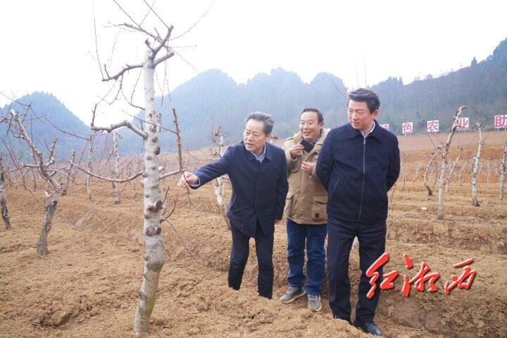 虢正貴調研十八洞特色農業融合發展項目并實地察看果樹培管情況。
