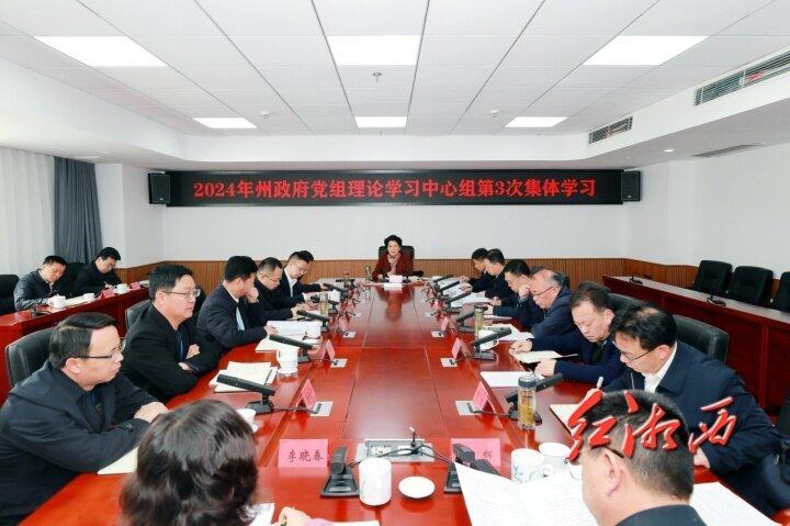 湘西網3月29日訊(全媒體記者 陳海泉)3月28日上午,湘西州委副書記、州長、州政府黨組書記陳華主持召開2024年州政府黨組理論學習中心組第3次集體學習會議,深入學習領會習近平文化思想和習近平總書記關于意識形態工作、加快發展新質生產力、加快構建現代化產業體系、扎實推動高質量發展的重要論述。