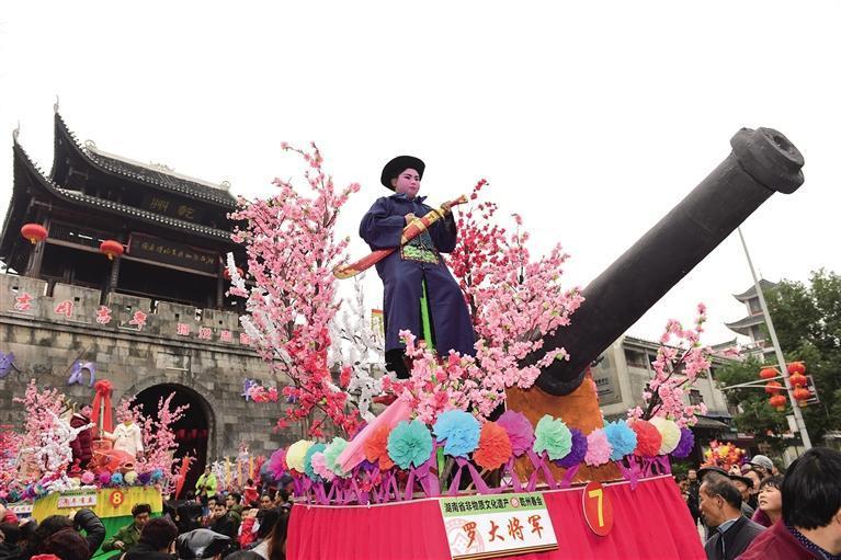乾州春會淵源于古代民間宗教祭祀活動,以后逐漸成為慶祝節日的一種裝飾藝術。每逢節日或喜慶之際,這些色澤艷麗、造型拙樸、寓意明快的各類紙扎品,既為迎春祈福活動增添了幾分喜慶歡快色彩,又能讓人們從中會意到吉首人的生產、生活縮影和精神文化追求,是湘西神秘文化鮮活生動的構成因子。