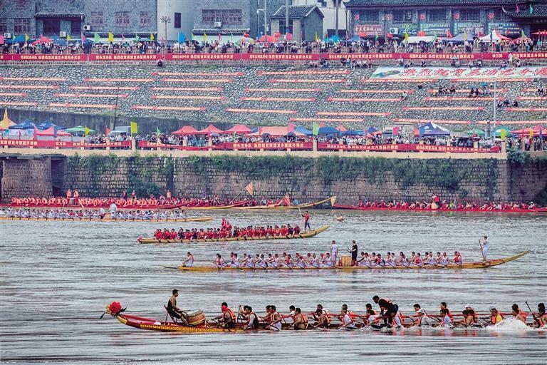 隱隱約約,耳邊又響起浦市龍舟令人血脈僨張的鼓點,眼前又晃過龍舟奮楫擊水的熱烈場景。明年的端午,我還要去浦市看看龍舟,看看龍舟賽。
