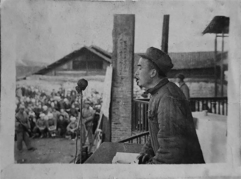 1951年,王彩彰在永順縣剿匪動(dòng)員大會(huì)上講話。 圖片由王彩彰女兒王亞紅 提供