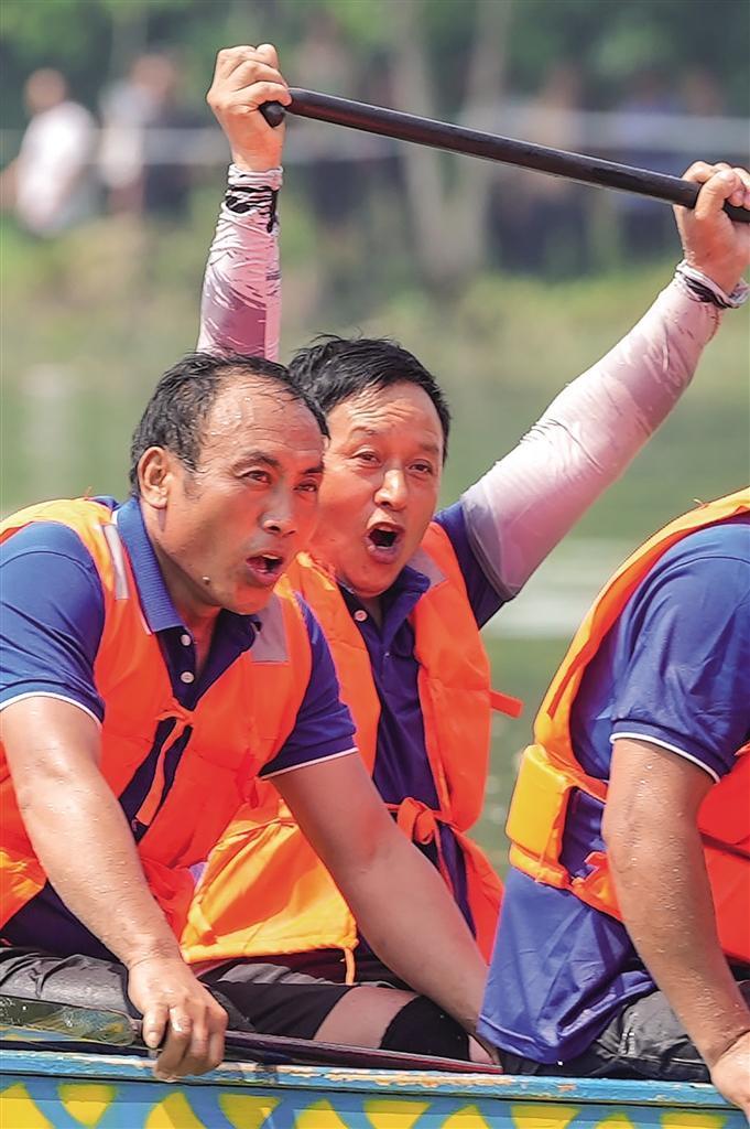 “歐吼!加油!歐吼!加油!”隊員們的沖勁和韌勁,讓兩岸圍觀群眾熱情高漲、激動不已,紛紛使出渾身解數(shù)為各自支持的龍舟隊搖旗吶喊、加油鼓勁,熱鬧氣氛鋪滿了清水江。