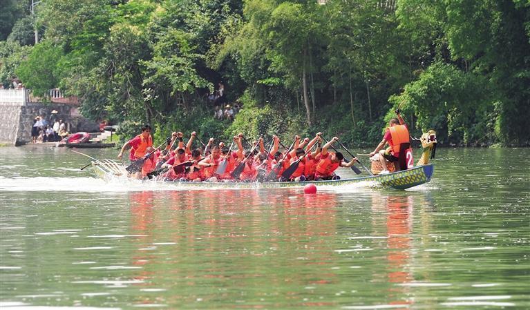“上一次看扒龍船我才十幾歲,那時我們略水村就在清水江里,用挖沙木船搞比賽?!甭运?0歲的村民田茂貴一臉興奮地說,“今年扒龍船氛圍格外好,全村男女老少齊上陣,為選手們加油助威!”