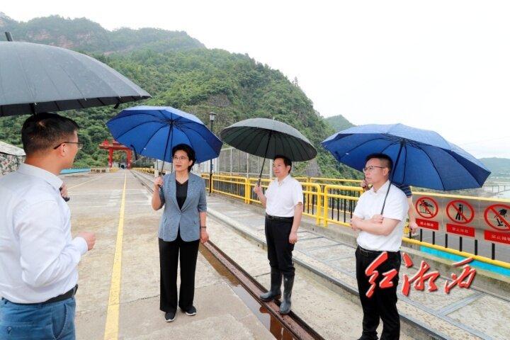 陳華調(diào)研碗米坡水電站水庫(kù)防洪應(yīng)對(duì)工作。周興云 攝