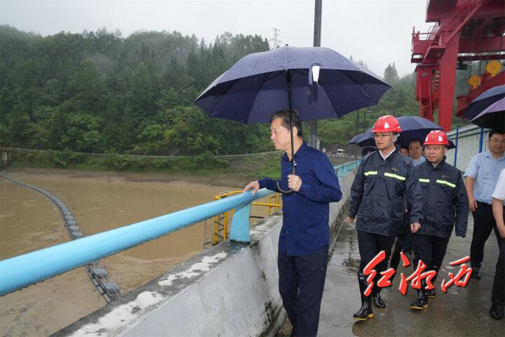 落水洞水電站總庫容3019萬立方米,總裝機35兆瓦。虢正貴走上水庫大壩、步入電站管理平臺,詳細了解水庫庫容、當前水位、電站防洪調度等情況。他指出,汛情就是命令,責任重于泰山,要強化水電站安全管理,嚴格值班值守,強化上下游聯動,充分發揮水電站錯峰攔洪作用,確保水庫安全、下游安全。