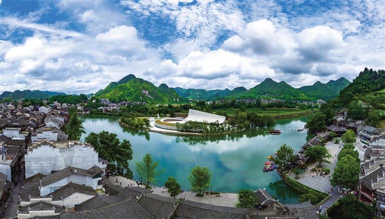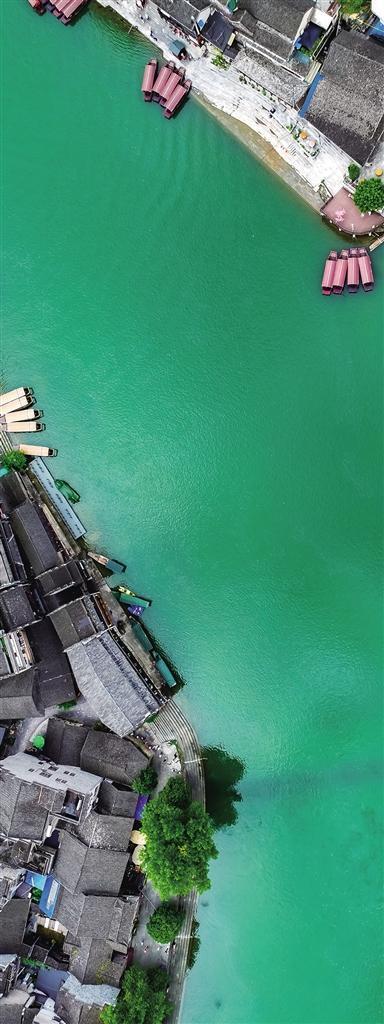 “茶峒地方憑水依山筑城,近山的一面,城墻如一條長蛇,緣山爬去。臨水一面則在城外河邊留出余地設碼頭,灣泊小小篷船?!?/span>