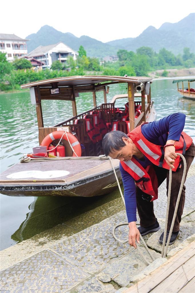夏日,在花垣縣邊城茶峒景區,船工羅啟軍正同游客推薦景區特色。他身穿紅色褂子,身形瘦小,看起來平淡無奇。而正是這樣一個平凡人,卻能在群眾落水時挺身而出,跳入洶涌湍急的河流,救群眾于危難之間。