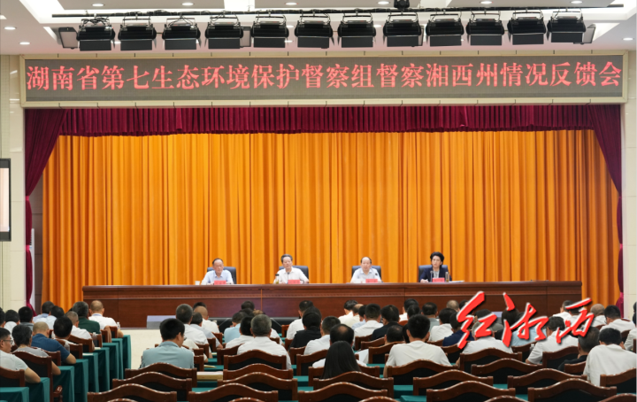 為深入貫徹落實(shí)習(xí)近平生態(tài)文明思想和習(xí)近平總書記對(duì)湖南工作的重要講話重要指示批示精神,根據(jù)《中央生態(tài)環(huán)境保護(hù)督察工作規(guī)定》《湖南省生態(tài)環(huán)境保護(hù)督察工作實(shí)施辦法》有關(guān)要求,2024年3月13日至4月1日,省第七生態(tài)環(huán)境保護(hù)督察組(以下簡(jiǎn)稱督察組)對(duì)湘西自治州開(kāi)展了第二輪省生態(tài)環(huán)境保護(hù)例行督察。經(jīng)省委、省政府批準(zhǔn),督察組于2024年7月9日向湘西州委、州政府進(jìn)行反饋。反饋會(huì)由州委副書記、州長(zhǎng)陳華主持,督察組組長(zhǎng)唐勇通報(bào)督察報(bào)告,湖南省政協(xié)副主席、湘西州委書記虢正貴作表態(tài)發(fā)言。劉益貴副組長(zhǎng),督察組有關(guān)人員,湘西州委、州政府有關(guān)領(lǐng)導(dǎo)、州直及中省駐湘西有關(guān)單位負(fù)責(zé)同志參加會(huì)議。縣市區(qū)黨政主要領(lǐng)導(dǎo)和班子其他領(lǐng)導(dǎo)成員,以及相關(guān)部門主要負(fù)責(zé)人通過(guò)視頻會(huì)議形式列席。