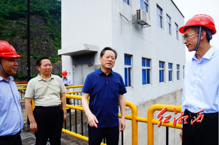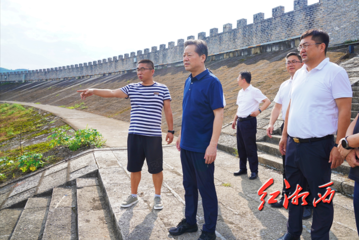 在保靖縣碗米坡水庫(kù)檢查督導(dǎo)防汛抗災(zāi)工作。本組圖片由團(tuán)結(jié)報(bào)全媒體記者劉煒攝