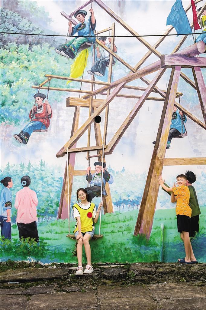 墻繪不僅能看,還能互動,將秋千、背簍設置成可互動的設施,游客來到排兄,也變成了美麗鄉村的“畫中人”。