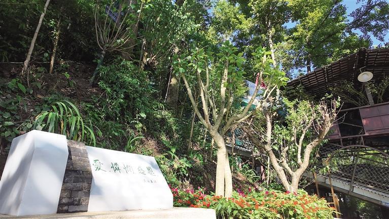 一塊由漢白玉打造的紀(jì)念碑立于樹蔭下,上面是黃永玉先生題寫的:愛·憐憫·感恩。