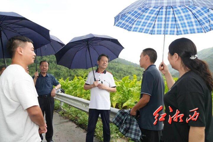 在龍山縣靛房鎮中心村千畝烤煙基地,虢正貴認真察看了煙葉長勢,與基層干部群眾交流村集體經濟發展情況。他強調,要認真總結烤煙種植過程中的成效和經驗,做好生產要素保障,提高土地利用率,完善利益聯結機制,帶動群眾增收致富。