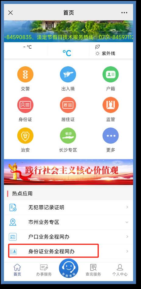 湖南戶籍居民可微信關(guān)注“湖南公安服務(wù)平臺”公眾號,點(diǎn)擊“微警務(wù)”,進(jìn)入平臺首頁,注冊并實(shí)人認(rèn)證登錄后(姓名變更、住址變更、民族變更更正申請人用變更前身份登錄),在熱點(diǎn)應(yīng)用欄中選擇“身份證業(yè)務(wù)全程網(wǎng)辦”進(jìn)行辦理。