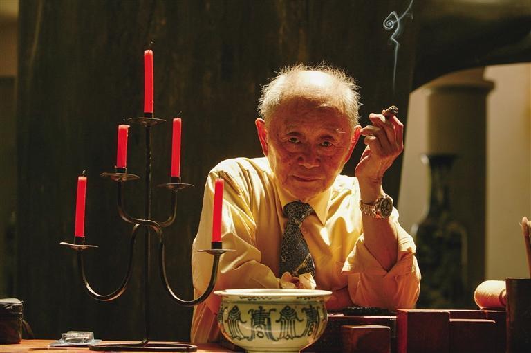 黃永玉曾說: “一個戰士,不是戰死沙場便是回到故鄉。”先生如果能算做戰士的話,應該說,他既在戰場上建立了不朽的功勛,也如愿以償地回到了自己的故鄉,兩全其美,美美與共!這是2004年4月,先生在鳳凰古城自建的玉氏山房家里抽著雪茄,怡然自得地在紅燭臺旁留影存念。