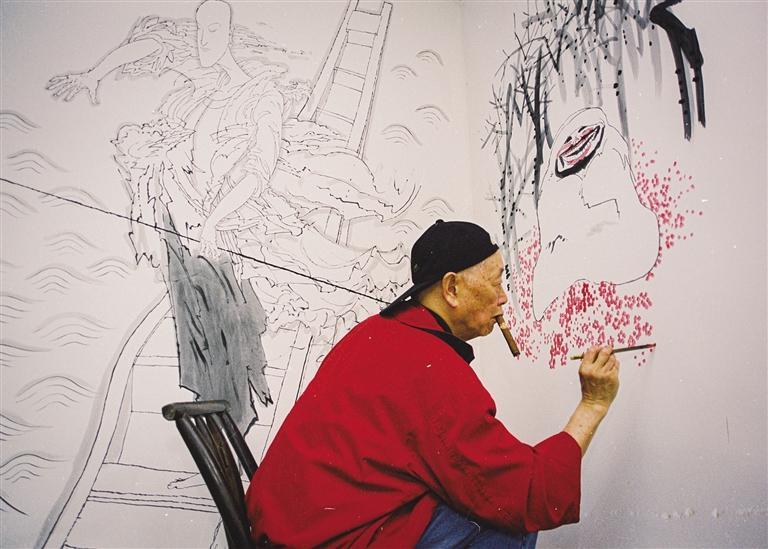 黃永玉的故鄉是鳳凰,是湖南,他也是湘楚文化的杰出代表。他的畫作被大家廣泛認可,是必然的。1997年,先生受邀為湖南省委接待處九所賓館創作巨幅畫作《西洲曲》,這是他忘情揮筆時的背影。
