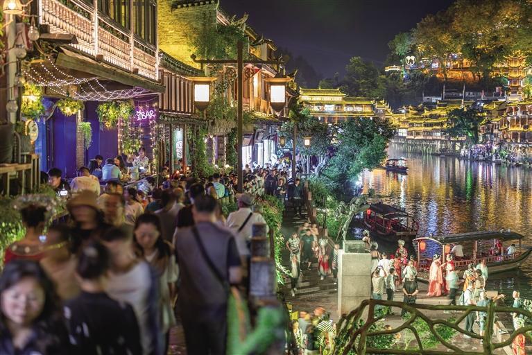鳳凰古城夜色之美讓游客沉醉。 團結報全媒體記者 張謹 攝