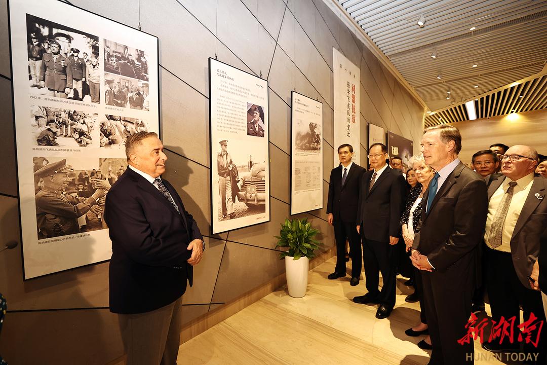 展廳內,一張張珍貴的黑白照片、一段段翔實的史料介紹,再配合杰夫瑞·格林主席的深情講述,仿佛將大家帶回到80多年前那段戰火紛飛的崢嶸歲月。毛偉明說,中華民族是愛好和平、維護正義的偉大民族。抗日戰爭時期,由陳納德將軍率領的飛虎隊同中國軍民并肩作戰,用鮮血和生命譜寫了一曲捍衛正義、追求和平的歷史壯歌。80多年來,飛虎隊的佳話在中美兩國生動傳頌,雙方人民因“飛虎隊”結下的美好情誼,從歷史中走來,正向未來延伸。湖南將深入貫徹習近平總書記復信美中航空遺產基金會主席和飛虎隊老兵代表的重要指示精神,與美中航空遺產基金會進一步加強交流合作,在三湘大地講好“飛虎故事”,讓更多民眾尤其是青少年深入了解飛虎隊與中國人民攜手抗戰的歷史和文化,讓飛虎情誼在中美兩國持續相傳、綻放新的時代光芒。希望雙方以本次圖片展為契機,進一步加強對話交流,在通用航空產業、教育、文旅等領域深化合作,為促進中美民間友好作出新的更大貢獻。