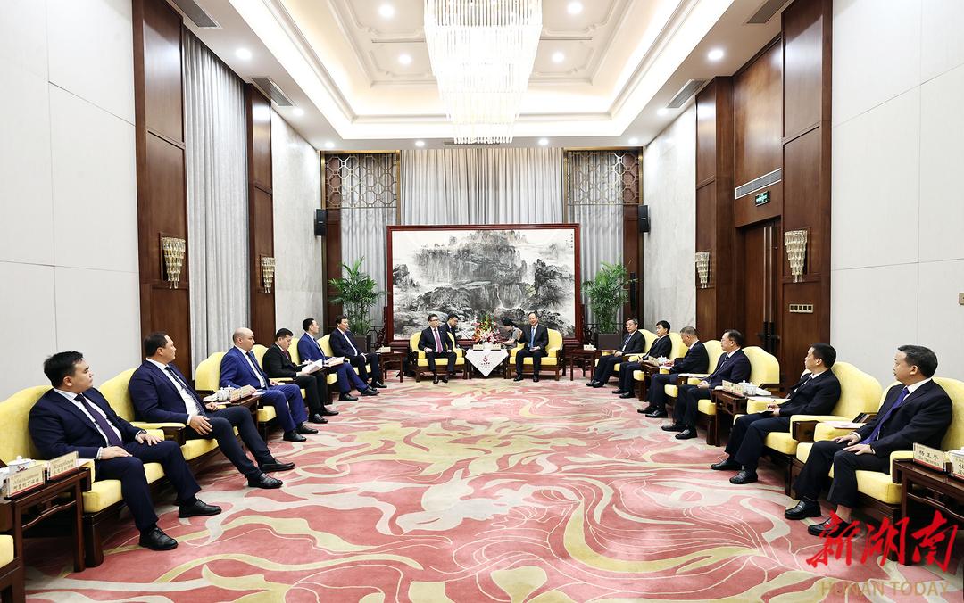 毛偉明對沙卡利耶夫一行的到來表示歡迎。他說,湖南與哈薩克斯坦交往源遠流長,雙方交往頻繁、農業(yè)合作深入、經貿往來密切,尤其是近年來三一集團、中聯(lián)重科、湖南農業(yè)集團、楓柏建設等一批優(yōu)秀湘企赴哈開展投資合作,結出了豐碩成果。目前,哈薩克斯坦已成為湖南在中亞地區(qū)開展貿易投資合作的重點國家之一,2023年湖南與哈薩克斯坦實現(xiàn)進出口總額39.5億元,同比增長82.7%。毛偉明表示,湖南與哈薩克斯坦產業(yè)互補性高,合作前景廣闊。希望雙方共同落實好兩國元首達成的重要共識,深度融入共建“一帶一路”,共促企業(yè)互通、共致經貿融通,持續(xù)加強農業(yè)、裝備制造、礦產冶煉、新能源、生物醫(yī)藥、文化旅游等領域合作,密切人員往來,為深化中哈永久全面戰(zhàn)略伙伴關系貢獻更多力量。