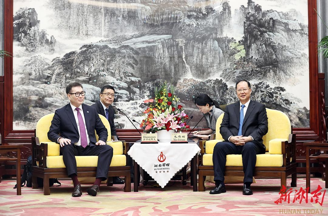 10日中午,省委副書記、省長毛偉明在長沙會見哈薩克斯坦貿易和一體化部部長沙卡利耶夫一行。