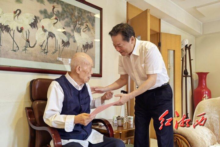 離休老黨員、老干部郝瑞華今年96歲,老人身姿挺拔,精神矍鑠。“郝老一輩子為黨的事業(yè)奮斗,尤其為我們湘西的事業(yè)奮斗,近年來湘西州在老一輩無私奉獻(xiàn)、頑強拼搏打下的基礎(chǔ)上努力拼搏,脫貧了、小康了,走在現(xiàn)代化道路上了,我們是不會忘記老同志的。”虢正貴與郝老及其家屬親切地拉家常,回憶老人當(dāng)初在湘西州工作的情況,共同展望湘西州的未來發(fā)展。他說,離休老干部是我們寶貴的財富,也是湘西州經(jīng)濟社會發(fā)展的重要參與者、貢獻(xiàn)者,相關(guān)部門一定要用心用情做好服務(wù)保障,與老同志時時保持聯(lián)系,隨時關(guān)注他們的身體健康,讓他們老有所養(yǎng)、老有所樂。