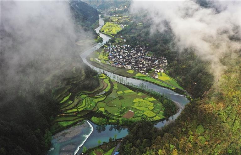 深藏不語的河流,在此處沖蕩開一大片平陂,水流深緩,土地肥沃,勤勞的人們春種向日葵,秋植油菜籽,惹得后一季花海潮涌,蝶飛蜂舞,場面喧騰。