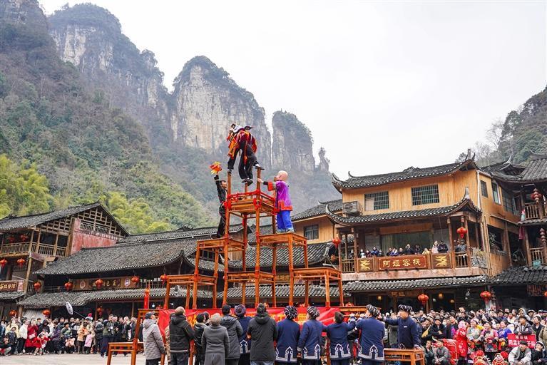 每年春節期間,德夯苗寨都會舉辦苗族百獅會,吸引眾多游客參與。