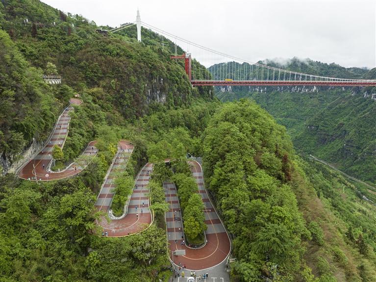 節假日,矮寨大橋下的觀光通道擠滿游客。