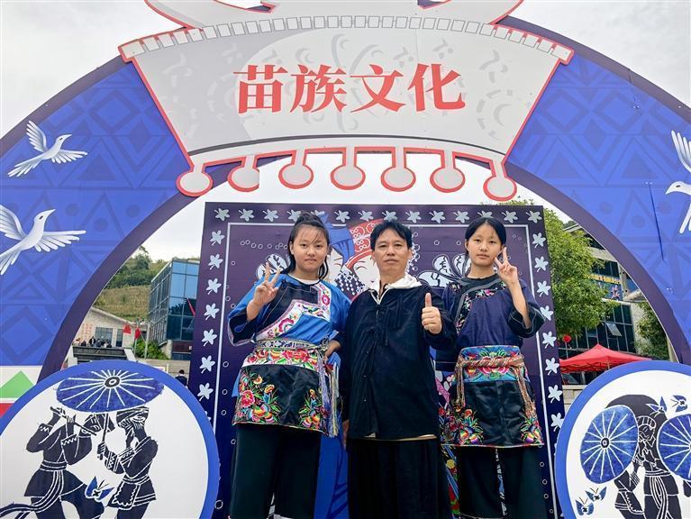 國慶期間,彭劍剛(中)到貴州畢節參加非遺展演。