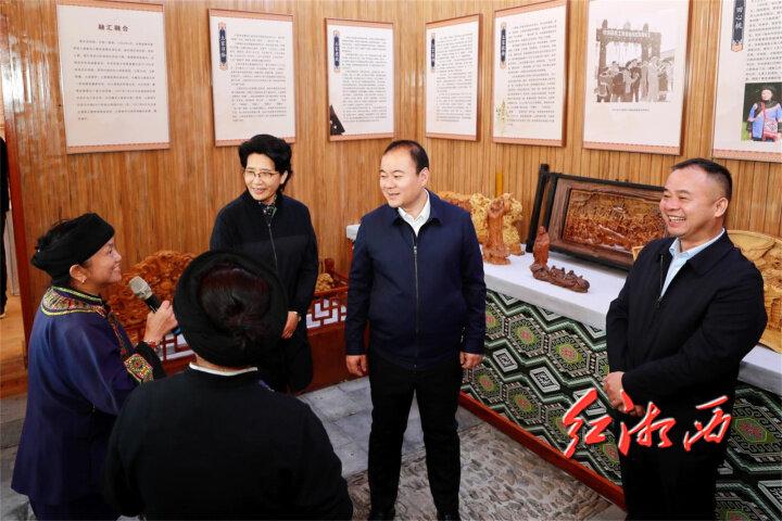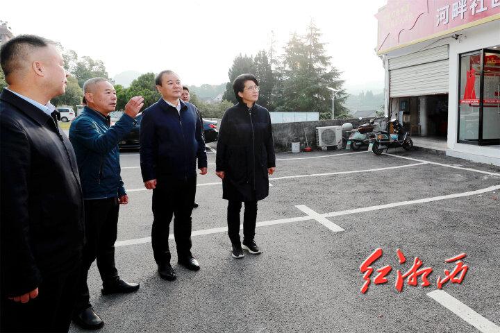 朱健、陳華一行到靈溪鎮(zhèn)雙鳳村(土家第一村)調(diào)研土家文旅項目建設(shè)情況。周興云 攝