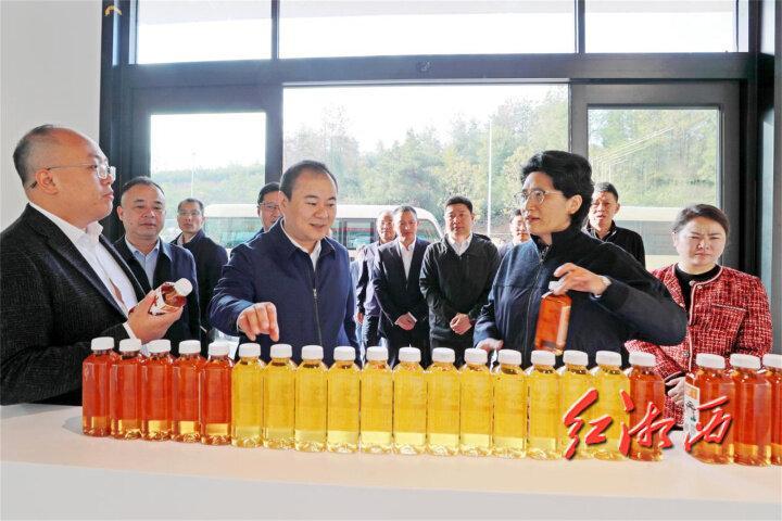 朱健、陳華一行到永順經(jīng)開區(qū)考察對口幫扶莓茶精深加工配套設(shè)施項目建設(shè)及莓茶產(chǎn)業(yè)發(fā)展情況。周興云 攝