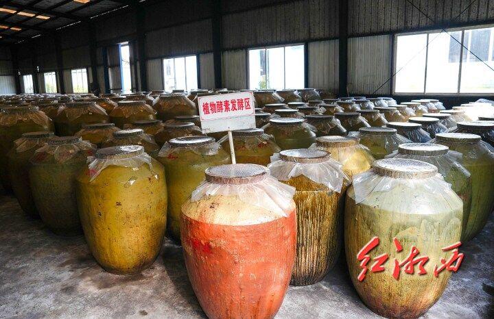植物酵素發(fā)酵區(qū)內(nèi)儲備著不少正在發(fā)酵的產(chǎn)品。