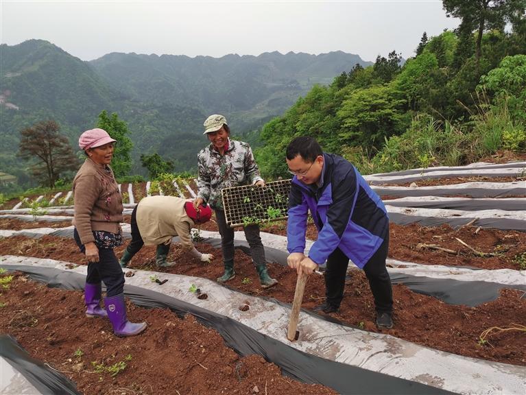 2020年,記者石秋云(右一)在古丈縣巖頭寨鎮磨子村蹲點采訪。