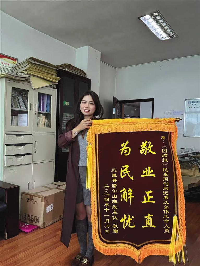 2024年11月6日,編輯中心收到鳳凰縣臘爾山班線車隊的錦旗,感謝《團結報》民生周刊為民發聲。