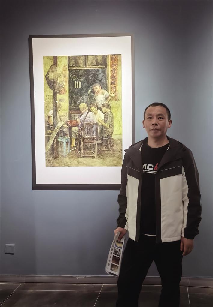 早前認識張庭群,是從聽說他的名字開始的。經常聽幾個美術界的朋友提起他,夸他美術專業過硬,作品經常入展,如:其水彩作品《鄰里親》入選2020年全國教師美術書法作品展;其水彩作品《苗》入選十三屆全國美展湖南省優秀美術作品展;水彩作品《老楊的退休生活》入選湖南第八屆水彩粉畫展;其油畫作品《殘荷》入選省文藝工作美術書法展;其油畫作品《苗家少女》入選新中國成立60周年州美術展……心生敬仰之余,對他的形象也有過無數種想象。
