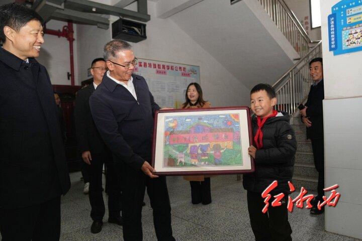 曹慧泉、劉濤在瀘溪縣株洲小學(xué)(武溪鎮(zhèn)二小)、瀘溪縣特殊教育學(xué)校參觀考察。本組圖片由團(tuán)結(jié)報(bào)全媒體記者 劉煒 攝