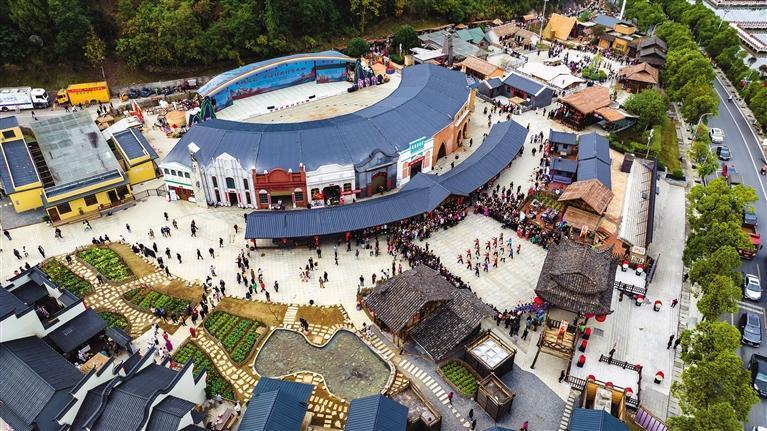 “村廚小村”由34棟具有濃烈地方特色的民居建筑組成,分別代表全國34個省級行政區(qū)。雖名“村廚小村”,實(shí)則一座“中國之窗”(無人機(jī)照片)。 團(tuán)結(jié)報(bào)全媒體記者 陳昊 攝