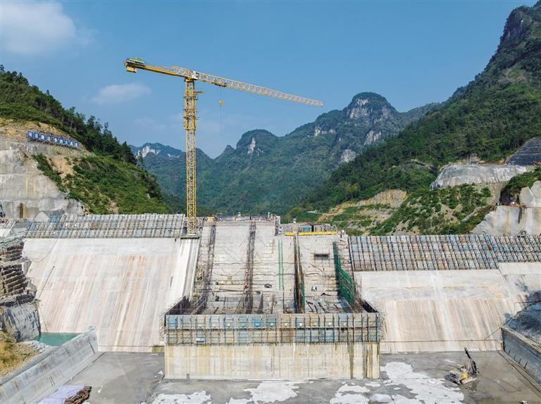 11月3日,吉首市大興寨水庫工程建設現場,工人正在加緊施工,確保工程進度穩步推進。大興寨水庫工程是2022年國家部署推進的55項重大水利工程之一,是2022年省政府確定的重點建設項目之一,也是湘西州水利基礎設施建設的標志性工程,建成后將為地區城市防洪、供水和農田灌溉等發揮重要作用。項目預計2025年全面竣工。 彭璟 攝