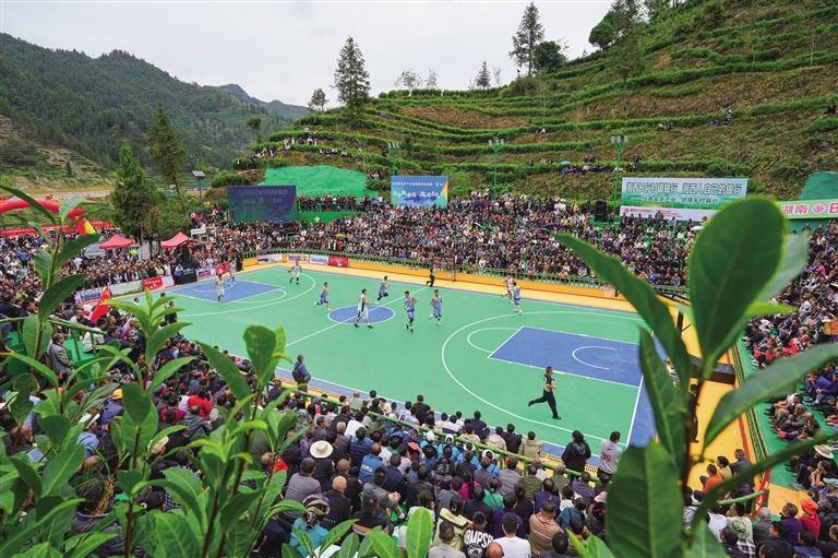 10月2日,保靖縣呂洞山鎮夯吉村茶山球場熱鬧非凡,“茶BA”激情上演。當天,2024年鑄牢中華民族共同體意識——首屆湖南“茶BA”籃球賽在風景秀美的呂洞山火熱開幕,吸引了來自縣內外70支籃球隊伍參賽,眾多群眾游客前來圍觀助威。 梁永鴻 攝
