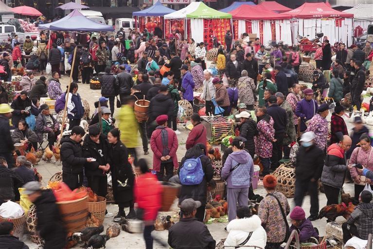 1月23日,農(nóng)歷臘月廿四,吉首市乾州農(nóng)貿(mào)市場迎來蛇年春節(jié)之前最熱鬧的一場“趕場”。 團結(jié)報全媒體記者 張謹(jǐn) 攝